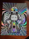 Shipped in a protective sleeve and tubed. 2 color screenprint on holographic cardstock. Fits in 18 " x 24" frame. Posters will ship out on Monday.